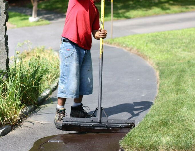 Sealing - Apply one squeegee coat of a long lasting rubberized coating which protects the asphalt from the damaging effects of gasoline, oil, sun oxidation, and freezing water. We recommend a coat of primer sealer on pavements that have never been sealed. A high solid content latex rubber additive used gives extra toughness, greater adhesion, faster drying and helps hold the deep black color longer.